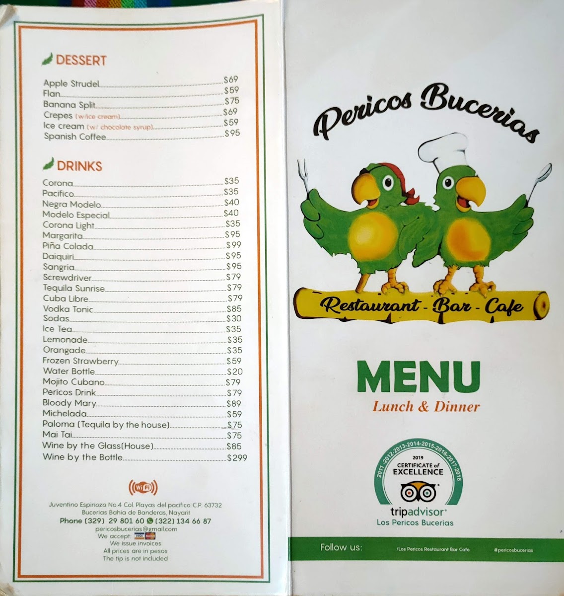 Los Pericos Bucerias Restaurant Bar Café Menu